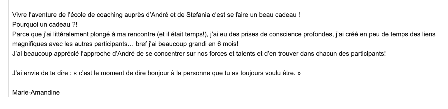 Puis vous commencerez à structurer votre propre méthode de coaching, à partir de votre énergie, vos valeurs et vos talents.